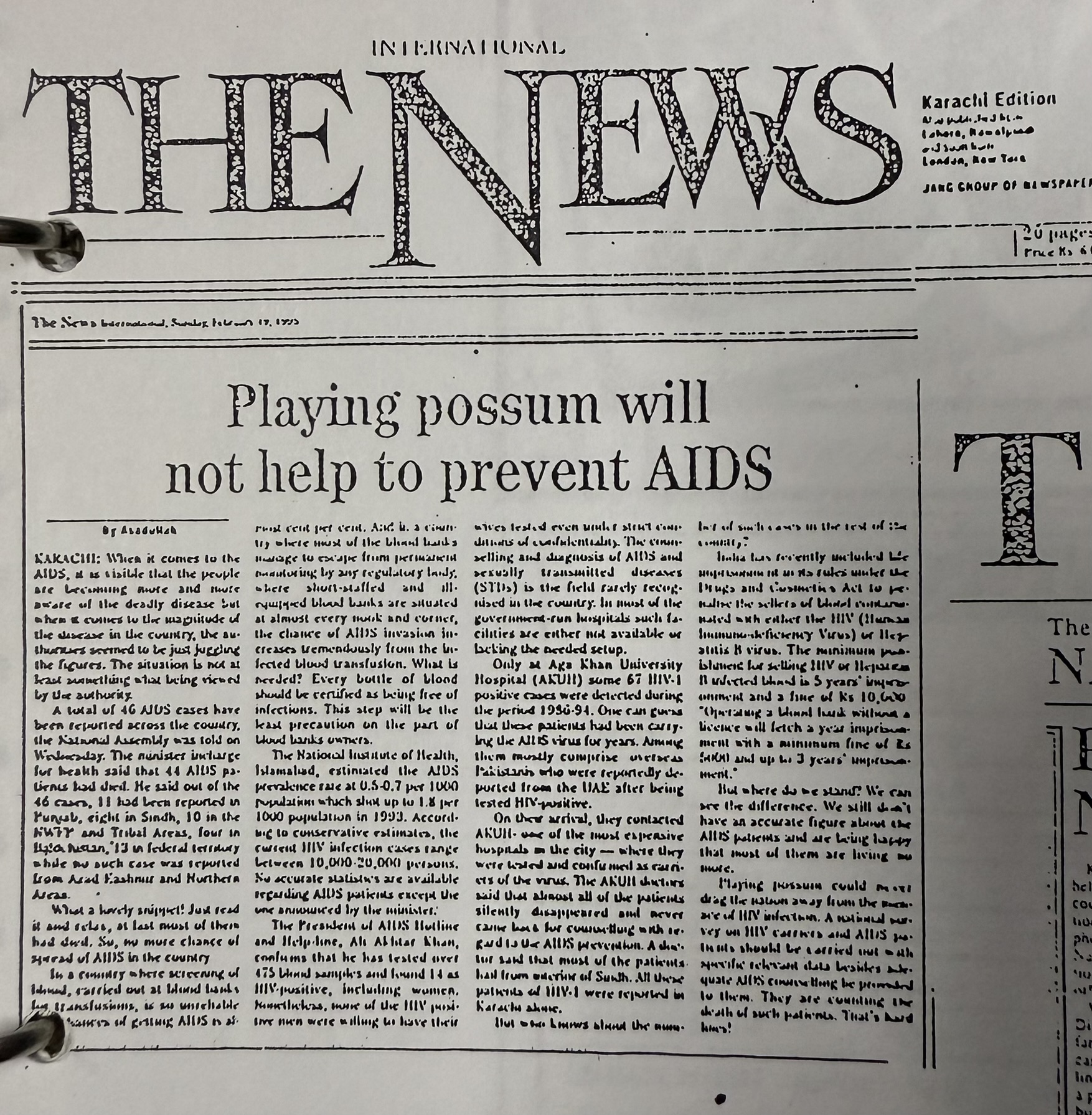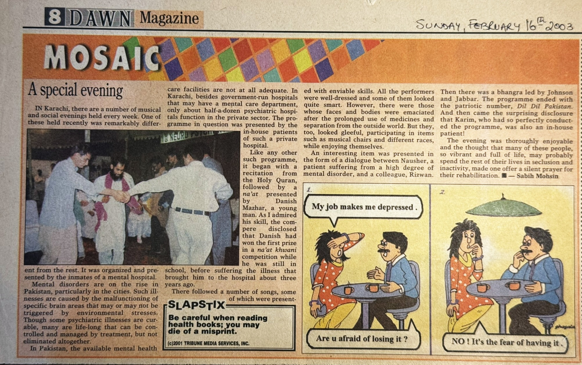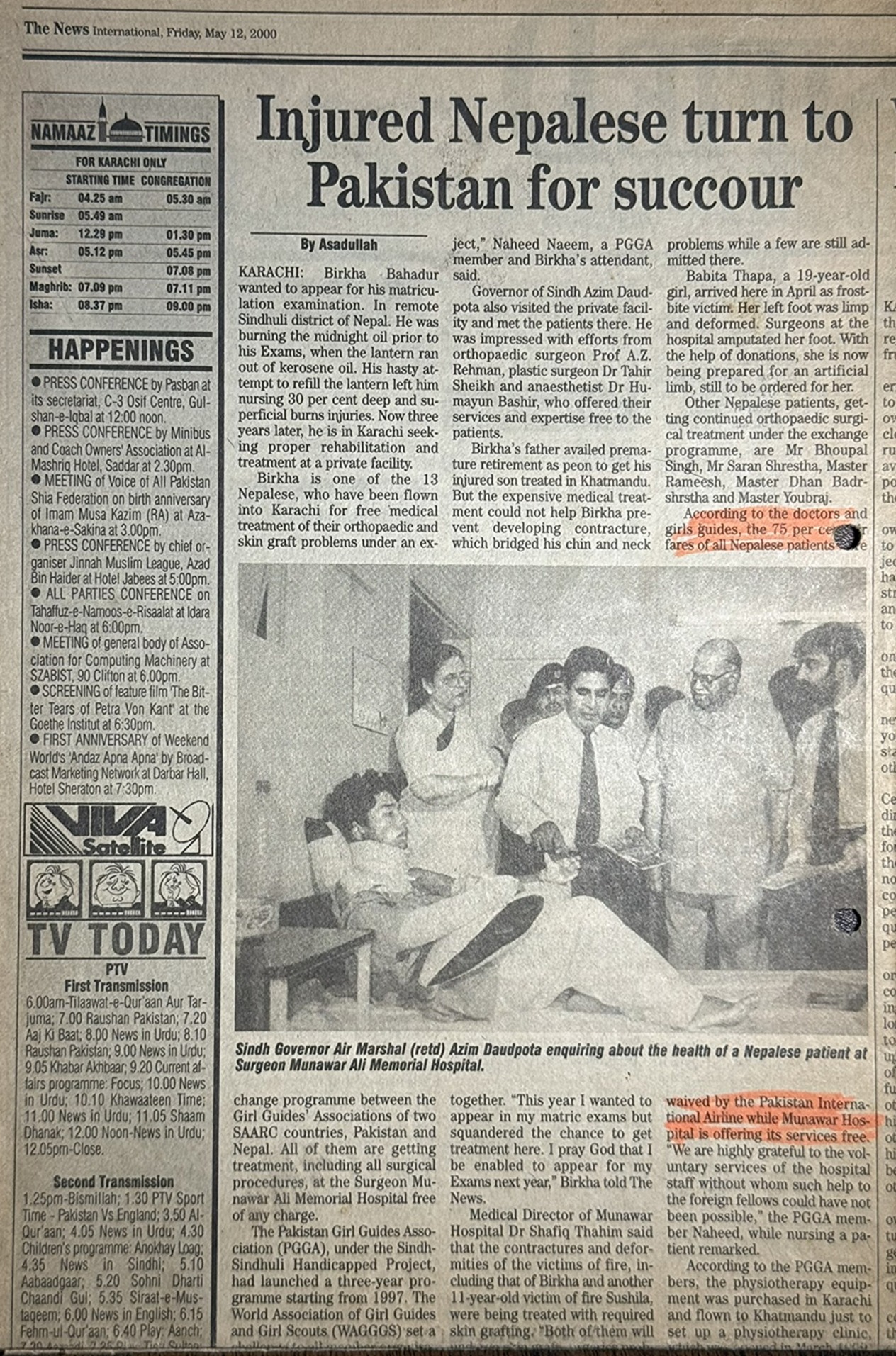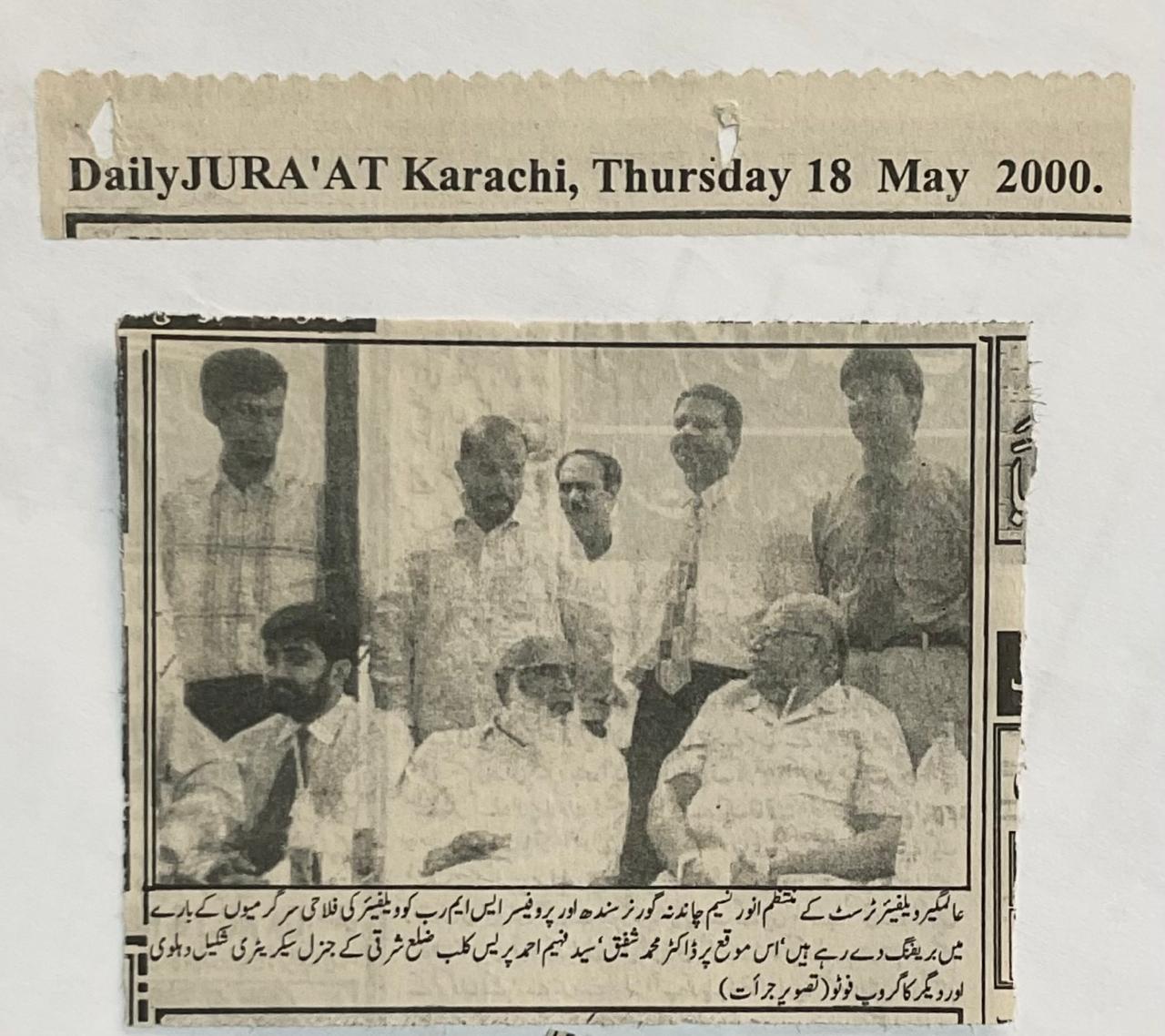 On May 18, 2000, Health Vision’s work in psychiatric care and community engagement was featured in Daily Ummat, one of Karachi’s major Urdu-language newspapers.