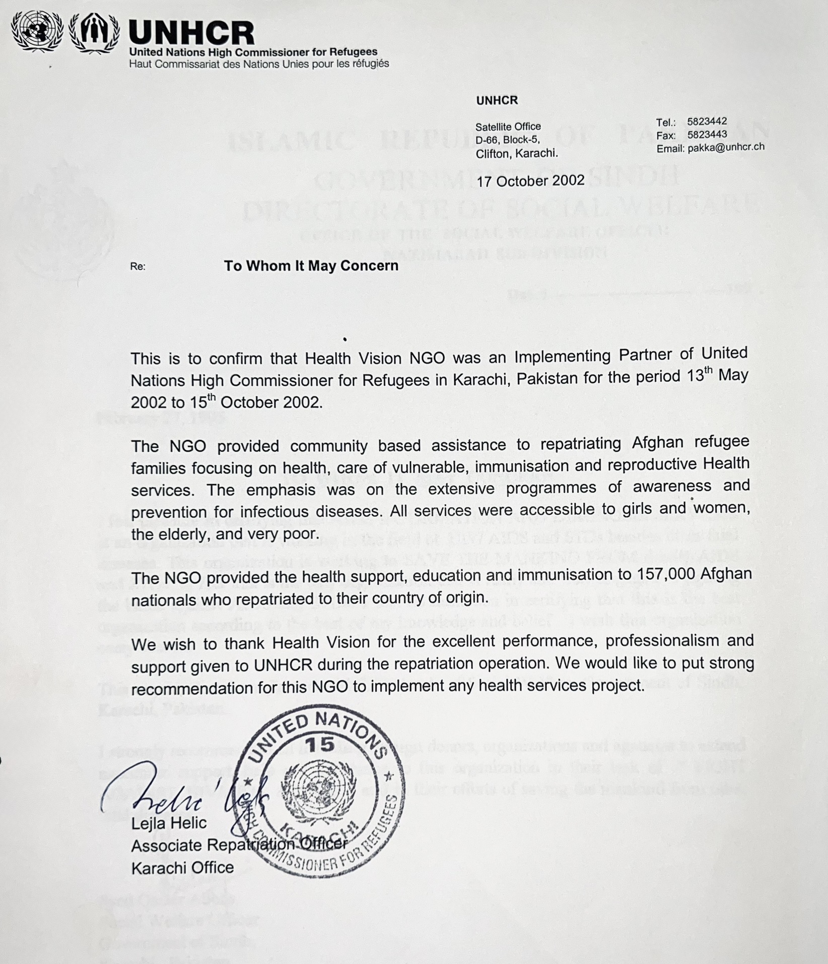 In 2002, Health Vision was selected as an official Implementing Partner of the United Nations High Commissioner for Refugees (UNHCR). Over five months, our team led a large-scale repatriation project to support Afghan refugees returning home.