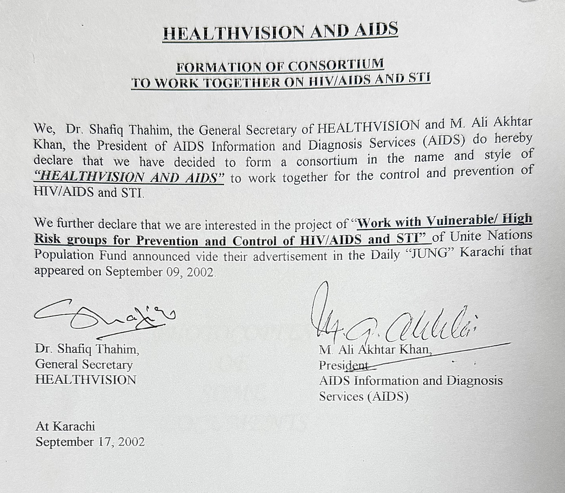 That same year, Health Vision joined hands with AIDS IDS to form one of Karachi’s earliest grassroots coalitions focused on HIV/AIDS awareness, prevention, and diagnosis.