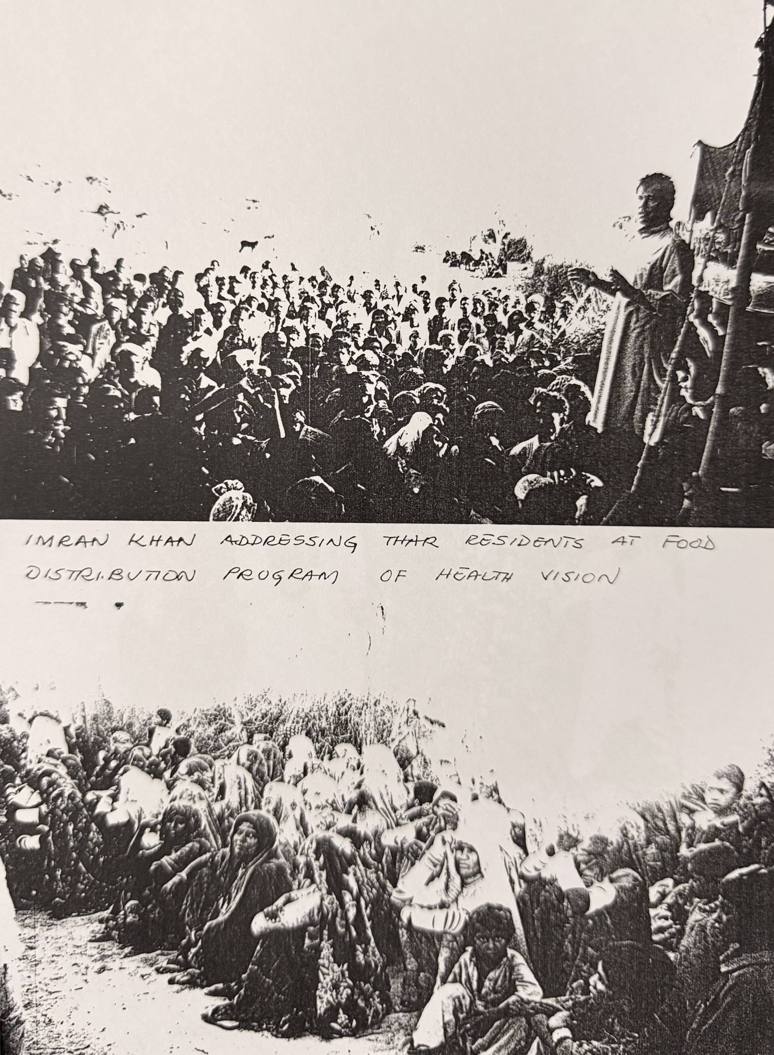 Thousands gathered to receive essential aid under the open sky — a striking moment of grassroots solidarity. Among the Health Vision team was Imran Khan, who at the time was a rising public figure and later went on to serve as the Prime Minister of Pakistan.